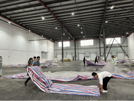 倉庫中,黨員干部職工充分發(fā)揚(yáng)不怕臟、不怕累的優(yōu)良作風(fēng)和團(tuán)結(jié)協(xié)作的良好精神風(fēng)貌,兩兩配合清理薄膜、疊彩條布、清掃垃圾,有效提升庫房的使用價(jià)值,同心協(xié)力營造整潔有序的生產(chǎn)環(huán)境。